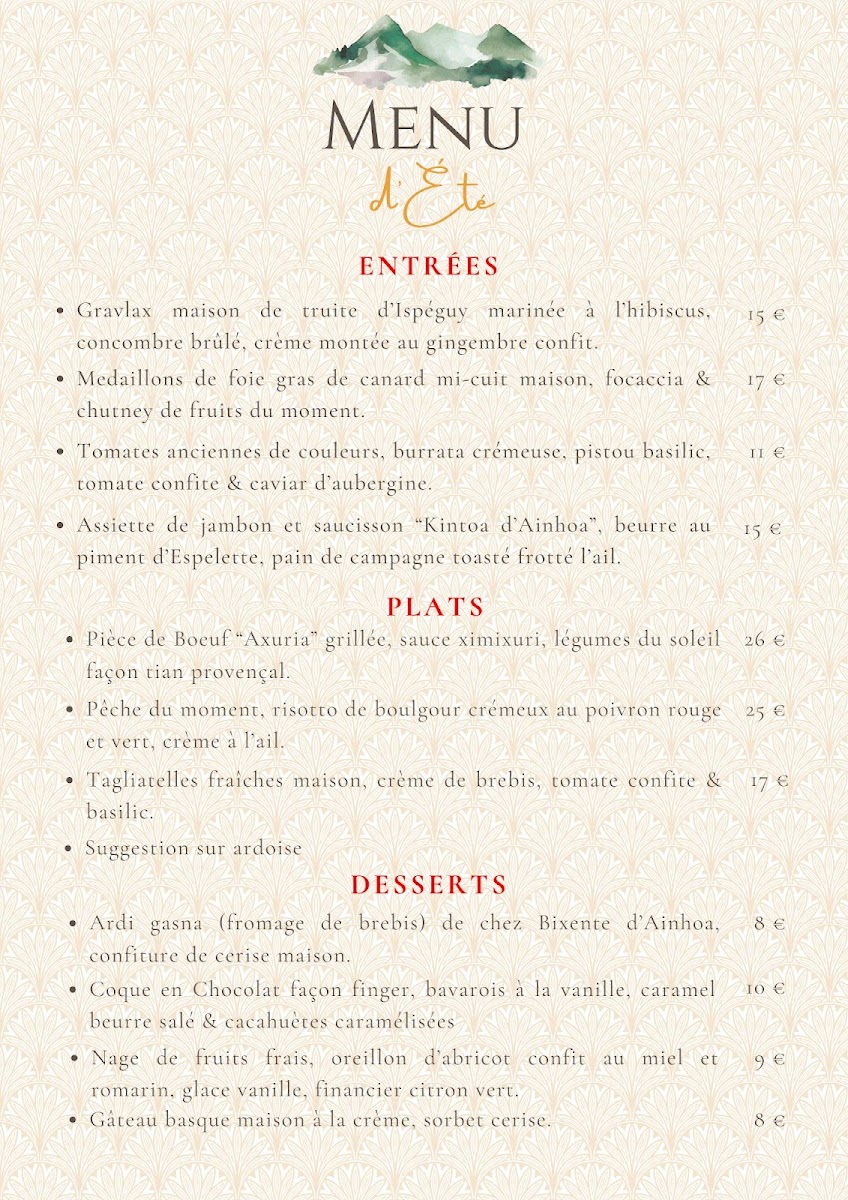Maison Oppoca - Restaurant Ainhoa presents a menu that effortlessly balances elegance with comforting flavors, showcasing both creativity and attention to detail. The standout Linguines Aux Gambas delivers perfectly cooked pasta tossed with succulent prawns in a delicate, flavorful sauce, capturing the essence of coastal cuisine in every bite. Each dish is thoughtfully composed, with a clear emphasis on fresh ingredients and refined presentation that elevates traditional Basque flavors. The menu demonstrates a keen sense of harmony, blending textures and seasonings without overwhelming the palate, making each course feel intentional and satisfying. From starters to desserts, the offerings maintain a consistent quality that reflects the restaurant’s dedication to culinary excellence, making a meal here not just dinner but a memorable gastronomic experience.
